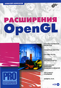 Описываются основные и наиболее популярные расширения библиотеки OpenGL, их использование на платформах Windows и Linux. Представлена реализация большого количества эффектов, созданных с помощью этих расширений. Показан механизм расширений и его использование для доступа к возможностям ускорителей с помощью языка шейдеров высокого уровня GLSL.