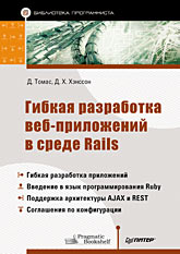 Перед вами русскоязычное издание бестселлера "Agile web development with Rails", написанного Д. Томасом - автором книги "Programming Ruby" и Д. Х. Хэнссоном - создателем Rails. Rails - это открытый фреймворк, который не просто позволяет создавать сложные и многофункциональные веб-приложения, но и делает их невероятно легкими. Полный код приложения, написанного на Rails, вполне может оказаться меньше, чем простой конфигурационный файл того же приложения, написанного с использованием другого фреймворка. Эта книга о веб-разработке в среде Rails. Вы увидите, насколько просто установить Rails при помощи веб-сервера Apache, lighttpd или же собственного встроенного веб-сервера Rails, научитесь создавать приложения, которые будут работать с вашей любимой базой данных (будь то MySQL, Oracle или Postgres). Rails service возьмет на себя отправку почтовых сообщений, реализацию веб-сервисов, а также создание динамических страниц со встроенной поддержкой AJAX. Довольно много места в этой книге отведено для описания тестирования, запуска и масштабирования вашего веб-приложения. Издание будет интересно всем желающим создавать динамические Web 2.0 приложения с использованием Rails.