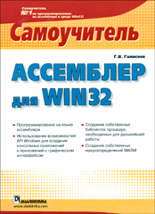 Эта книга-самоучитель поможет читателю самостоятельно освоить основы языка ассемблера и научиться создавать программы на этом языке. Здесь подробно рассказано о том, как начать работать с ассемблером и как писать программы на этом языке. В книге рассматривается в основном 32-разрядный режим работы ассемблера, позволяющий обращаться к процедурам прикладного интерфейса (API) Windows. Тем не менее, приведены и некоторые сведения, специфичные только для 16-разрядного режима, например, описание работы прерываний и понятие о программировании для DOS. Однако книга является лишь введением в язык ассемблера, поэтому в ней не отражены расширенные возможности языка ассемблера и команды, разработанные для новейших версий процессоров.