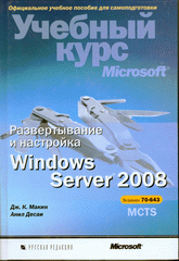 Книга "Развертывание и настройка Windows Server 2008. Учебный курс Microsoft MCTS № 70-643 (+ CD-ROM)" - подробное руководство по развертыванию и поддержке операционной системы Windows Server 2008. В книге даны пошаговые инструкции, описан механизм развертывания и процессы настройки новой ОС, ее основных компонентов: серверной системы хранения данных и кластеров, служб терминалов, веб-приложений, веб-сервера, служб FTP, SMTP, Windows SharePoints Services и Windows Media 2008. Кроме того, приводятся советы по устранению различного рода неполадок.