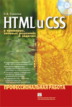 Книга посвящена языку HTML и технологии CSS, а также методам их практического использования при построении Web-сайтов. В ней приведены теоретические основы HTML и CSS, наряду со стандартными решениями, применяемыми в процессе проектирования современных Web-сайтов, причем повышенное внимание уделено вопросу взаимодействия HTML и CSS. Материал базируется на оригинальных спецификациях HTML 4.01 и CSS2 и характеризуется высокой степенью детализации материала. Благодаря особой структуре, книга будет полезна и новичкам в Web-дизайне, как эффективный учебник, и более опытным читателям, как компактный справочник и сборник готовых рецептов. К книге прилагается компакт-диск, содержащий тексты всех примеров, обсуждающихся в книге.